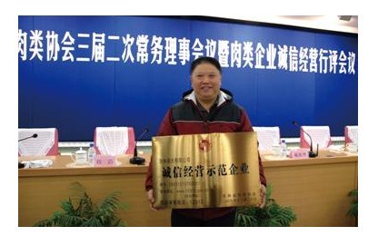 會上,對“誠信經營”示范企業頒發證書和標志牌,“誠信經營”示范企業代表全體協會會員向社會進行承諾,依法經營,誠信服務,嚴格把好肉品安全質量關,向社會奉獻“衛生、安全、優質”的肉類產品,自覺維護消費者的權益。